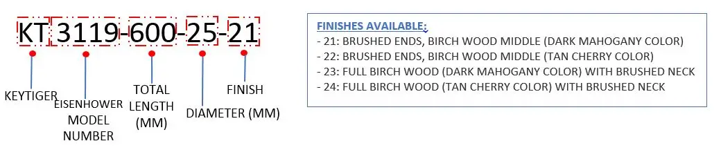 Brushed Ends, Birch Wood (Tan Cherry Color) Middle 300mm